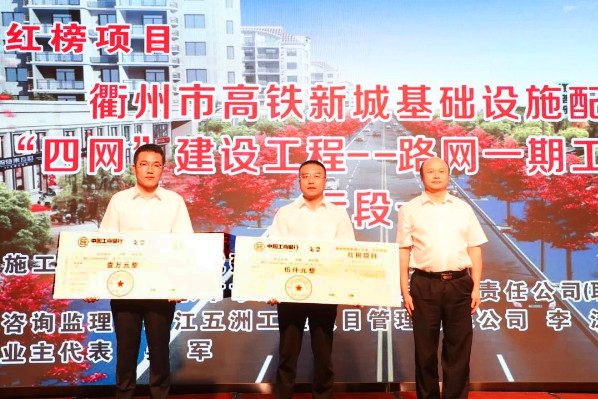 8月28日,匯通公司承建的衢州市高鐵新城基礎設施配套“四網”建設工程路網一期工程一標段,在衢州市智慧新城半年工作會議中受到建設單位的通報表彰,獲評“紅榜項目”,并獲得獎勵1萬元。