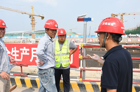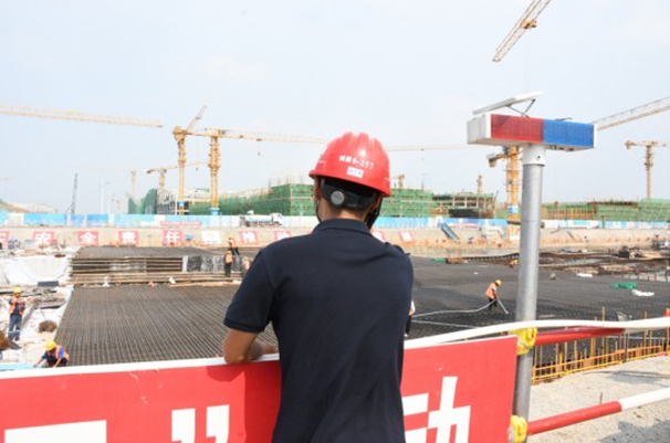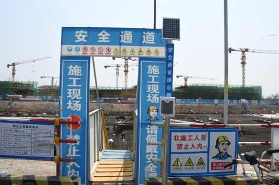 安全通道旁邊設置了安全語音提示器,從安全通道進入施工現場后會自動感應播放安全管理要求,時刻提醒施工人員安全生產。安全第一,是他負責項目施工所要遵循的第一要義。