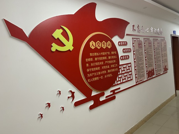 項目部走廊中設置了黨建文化長廊。發揮黨建的引領作用,帶領項目部成員,發揚“三牛精神”,青春閃光在一線,勇當建設排頭兵。