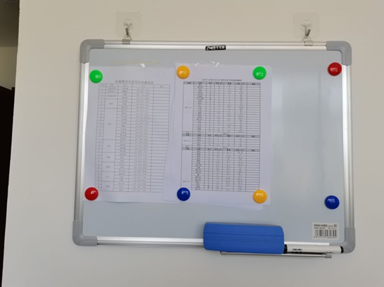 墻上懸掛著職工輪休公示、伙食費公示,確保一線職工休息和飲食,讓項目部成員更好的體會“家”的感覺。