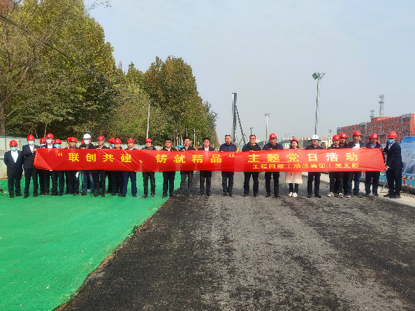 為慶祝黨二十大的勝利召開,充分發揮黨員先鋒模范作用,加快工程建設,10月29日,建設集團工程四部(動能集團)黨支部聯合黃河大道二標段各參建單位以“聯創共建、鑄就精品”為主題,舉辦主題黨日活動。施工、全詢、設計等參建單位黨支部黨員參加了此次活動。 活動第一階段首先觀摩了黃河大道一期工程項目施工二標段現場施工進展情況,各參建方現場交流了觀摩心得。 活動第二階段在崔寨指揮部中心會議室,全體黨員統一著裝,佩戴黨員徽章,認真學習了習近平總書記在黨的二十大上作的報告。大家表示,偉大建黨精神是中國共產黨的精神之源,我們將始終堅持以習近平新時代中國特色社會主義思想武裝頭腦、指導實踐、推動工作,永葆