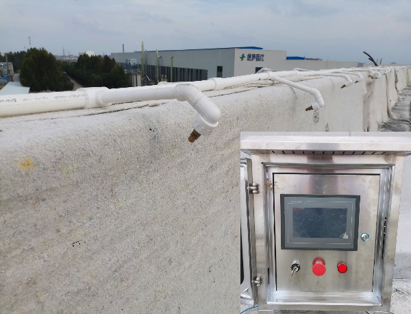 為提高高架橋防撞護欄養護效果,沭陽快速路二期工程威海路標段項目部應用防撞護欄噴淋養護裝置,該裝置的應用能夠有效提高防撞護欄施工質量。噴淋養護裝置由控制箱、水泵、水位傳感器探頭、導水管及噴頭組成。通過在噴淋控制界面調節單次噴淋持續時間、噴淋時間間隔等參數,可以實現間隔噴淋的效果,相對比持續噴淋的方式,能夠有效減少耗電、節約水資源,并可以根據工程現場條件靈活調節,適應性強。水位傳感探頭能夠有效傳遞水箱內水位信息,在控制界面可設定水位報警值,該報警值為傳感器探頭距離水面的距離。當水位低于設定值時,控制箱會發出警報并停止進行噴淋,避免出現空載運轉、燒泵的問題,可將水位傳感探頭與水泵進行固定連接。養護是
