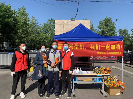 “高三考生們,我們一起加油!” 在領(lǐng)秀城秀柏社區(qū)的防疫志愿服務(wù)站,一條大紅色的條幅,一朵朵象征著太陽與光明、生機(jī)與活力的太陽花在陽光的照射下格外絢爛醒目。今天是五一勞動節(jié)也是高三考生因疫情封閉后第一天復(fù)課的日子。 在這個特別的節(jié)日里,領(lǐng)秀城秀柏社區(qū)的防疫先鋒隊(duì)第一小組組長榮峰提前一天就定購好了100朵鮮花,一大早,當(dāng)高三學(xué)生走到小區(qū)門口,志愿者們就將一朵朵鮮艷的太陽花和祝福卡送到學(xué)生手中,“想起了向日葵就想起了陽光,微笑和美好常在,我們一起加油!” “叔叔,太謝謝你們了,你們在加班加點(diǎn)為我們服務(wù),還給我們送花,真是讓我倍受鼓舞。”“太感謝你們了,謝謝志愿者們這些日子以來對我們