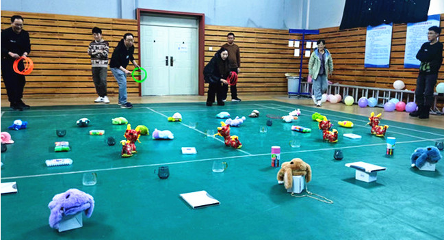 活動現場一片歡聲笑語,數十條以傳統文化、動植物、成語俗語、生活常識等內容為謎底,融合知識性、趣味性為一體的燈謎懸掛在墻上供大家競猜,凡猜中者,撕下燈謎可換取10個套圈參加套圈活動,套中即可獲得獎品,沒有套中的職工可以兩人組隊,進行運氣球比賽,從A點到B點,一次運球最多的一隊便可再得10個圈繼續參加活動。職工熱情高漲,認真完成每一項游戲,現場歡聲笑語場不斷。